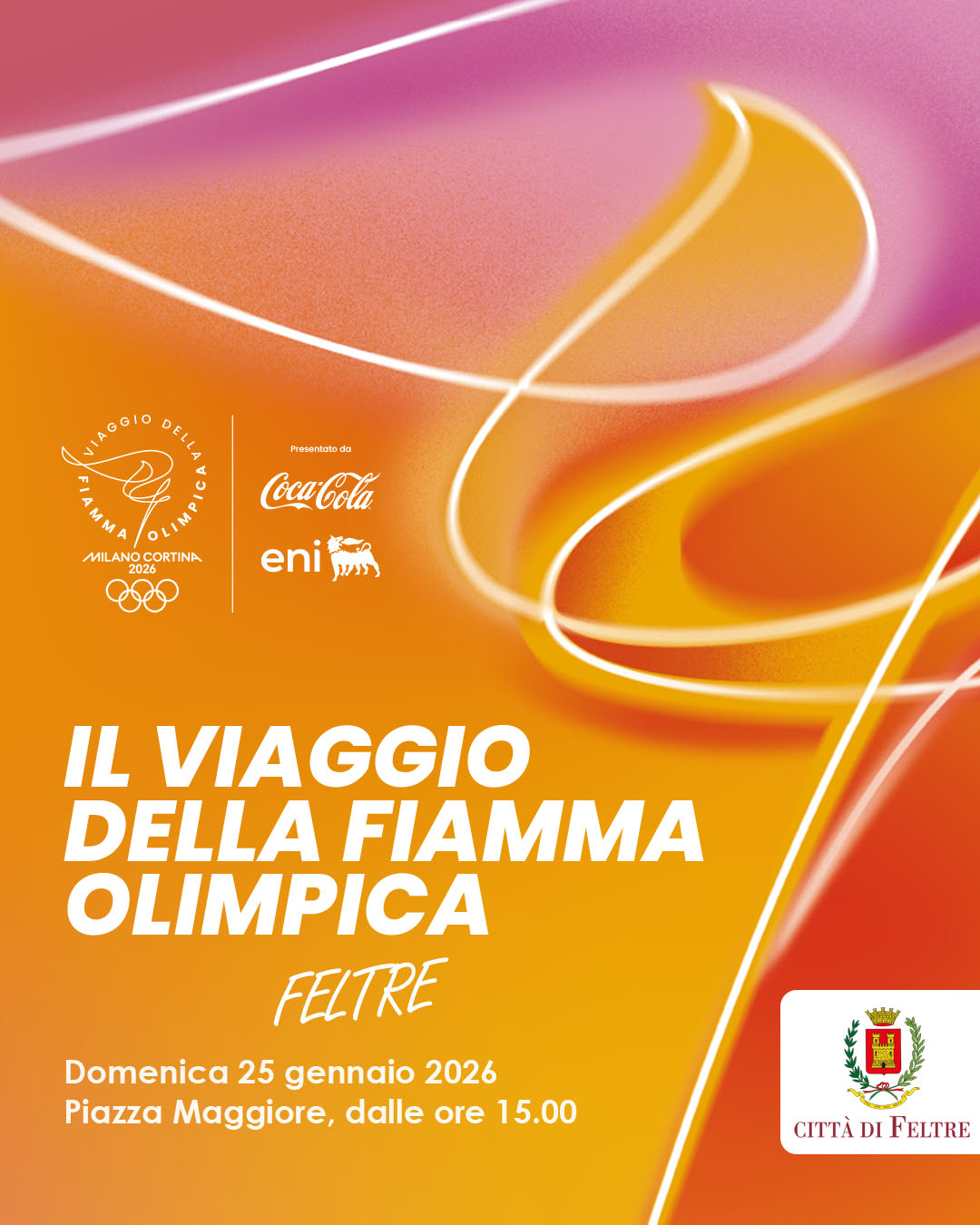 Domenica 25 gennaio 2026 la fiamma olimpica passerà anche per Feltre, lungo il tragitto che da Venezia condurrà verso Belluno, coinvolgendo molte città del Veneto.